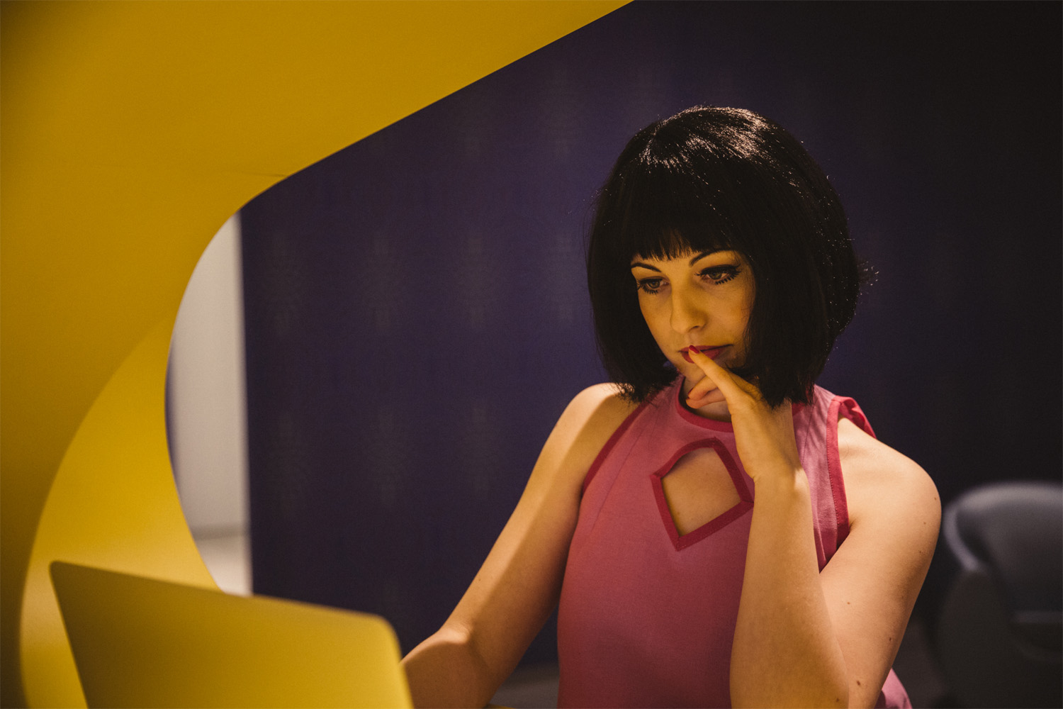 Studierende des Hauptstudiums erschufen Kostüme für den Bereich Film. Arbeitsgrundlage war das Drehbuch zu „Welt am Draht“, der 1973 von Reiner Werner Fassbinder verfilmt wurde. Vorlage hierfür ist der 1964 erschienene Science-Fiction-Roman „Simulacron-3“ von Daniel F. Galouye.